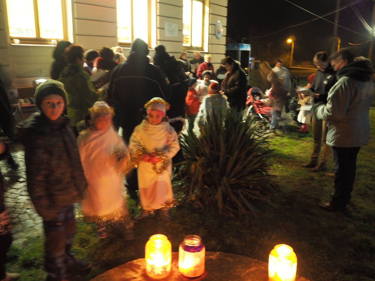 Letos se sešla hromada malinkých i velkých andílků, služebně nejstarší anděl S. zajistil účast a dozor, změnilo se ozvučení - vyhrával rozhlas, čaj, punč i koláčky pomohly zpěvákům vydržet chladný večer. Děkujeme všem, co si našli chvilku na setkání, usebrání i zpívání. letos bylo kolem stovky účastníků a skoro všichni i zpívali. Byl to krásný večer.