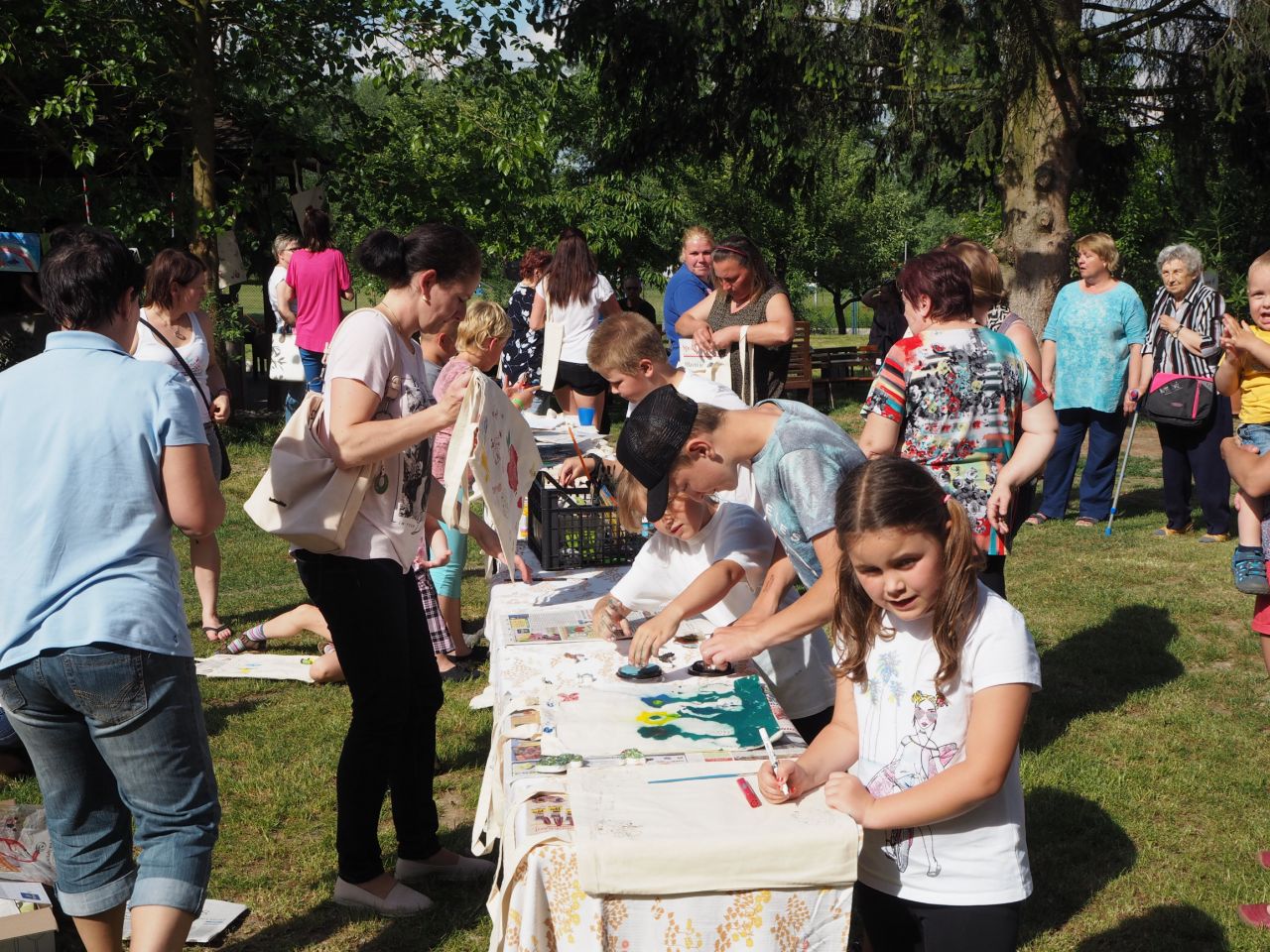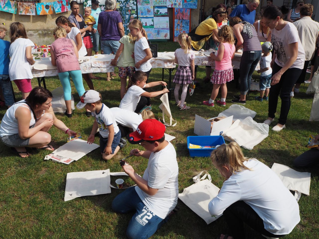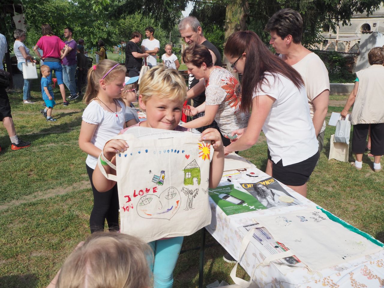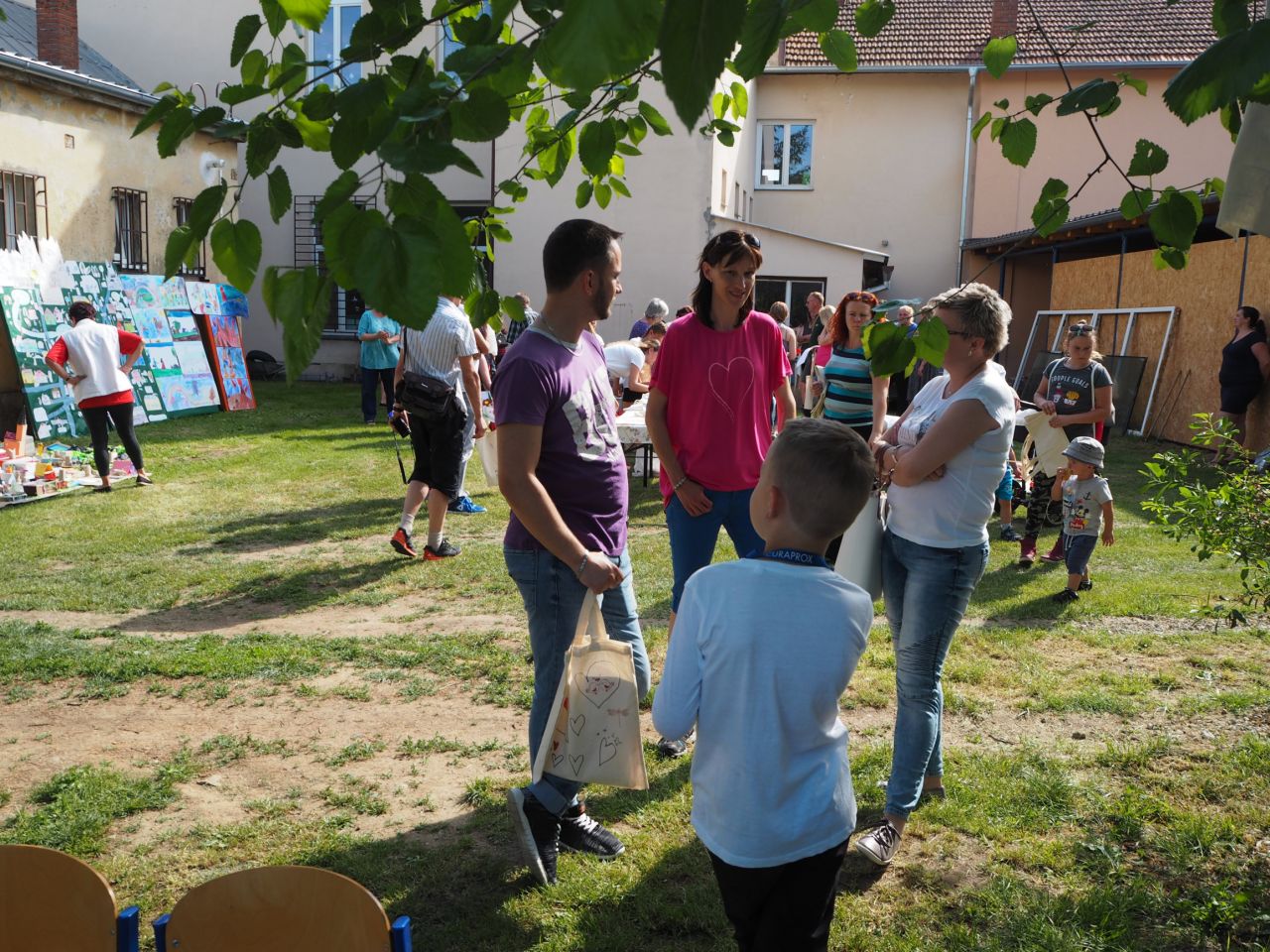 To vám bylo tak krásné páteční odpoledne! Kdo přišel, viděl krátké vystoupení dětí, ochutnal dobroty našich kuchařek a všech dospělých ze školy, získal informace o celoroční práci a mohl si vyrobit nákupní tašku a pytlíky na pečivo a zeleninu. Všichni si slunečný den opravdu užili.