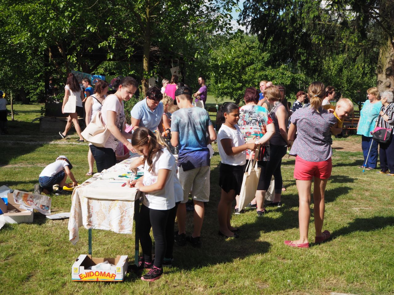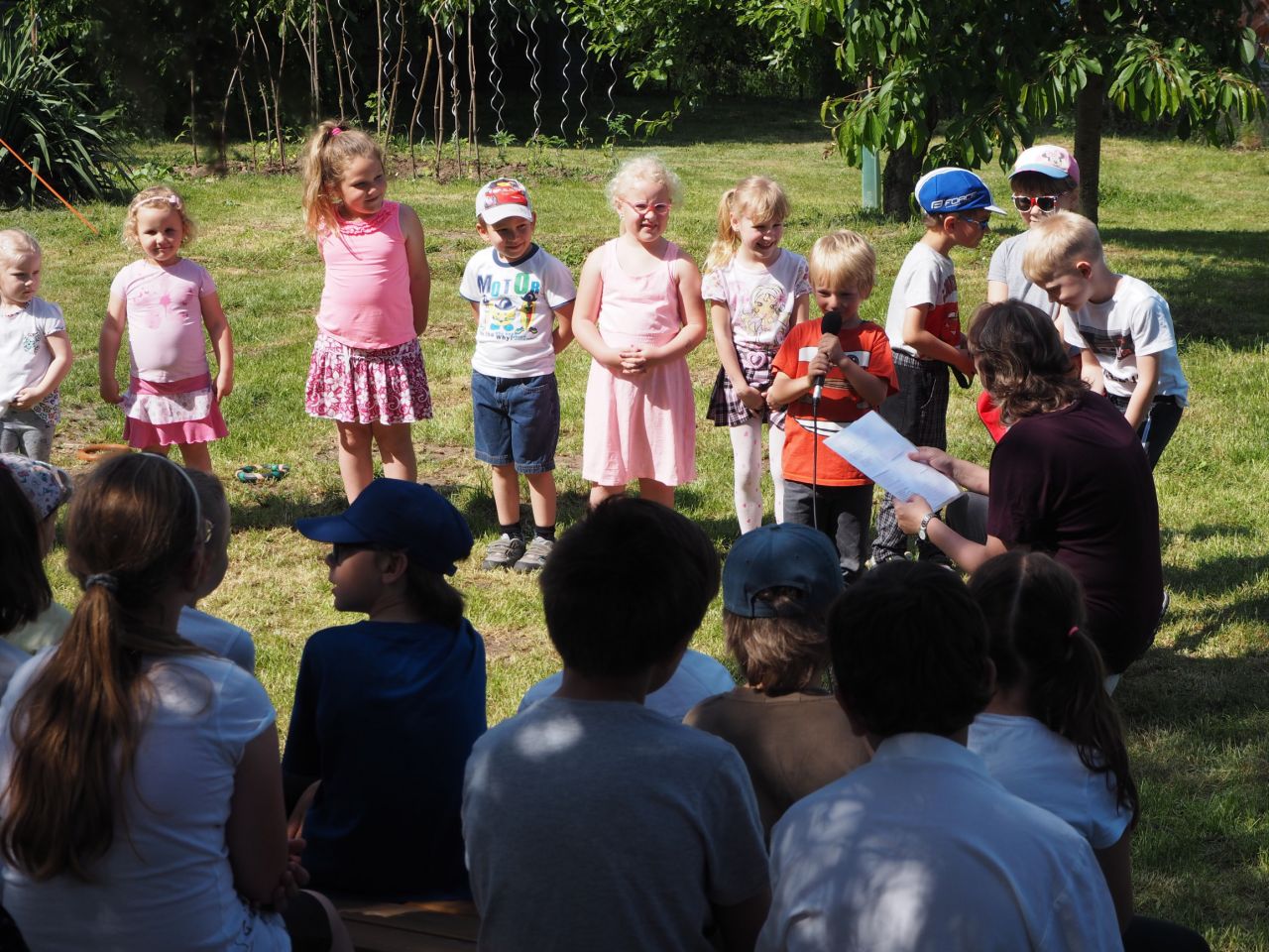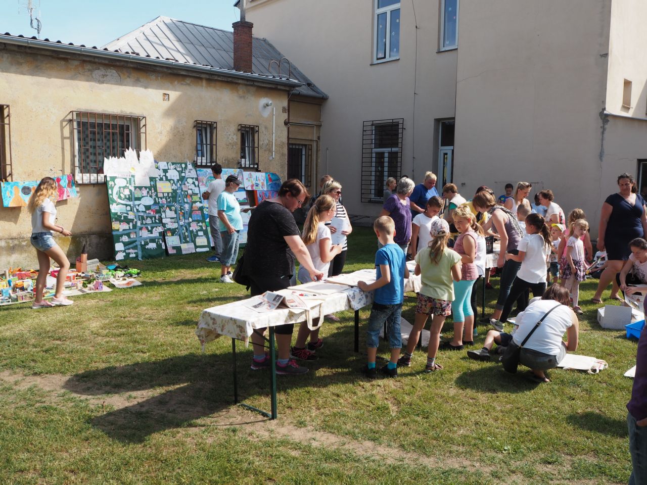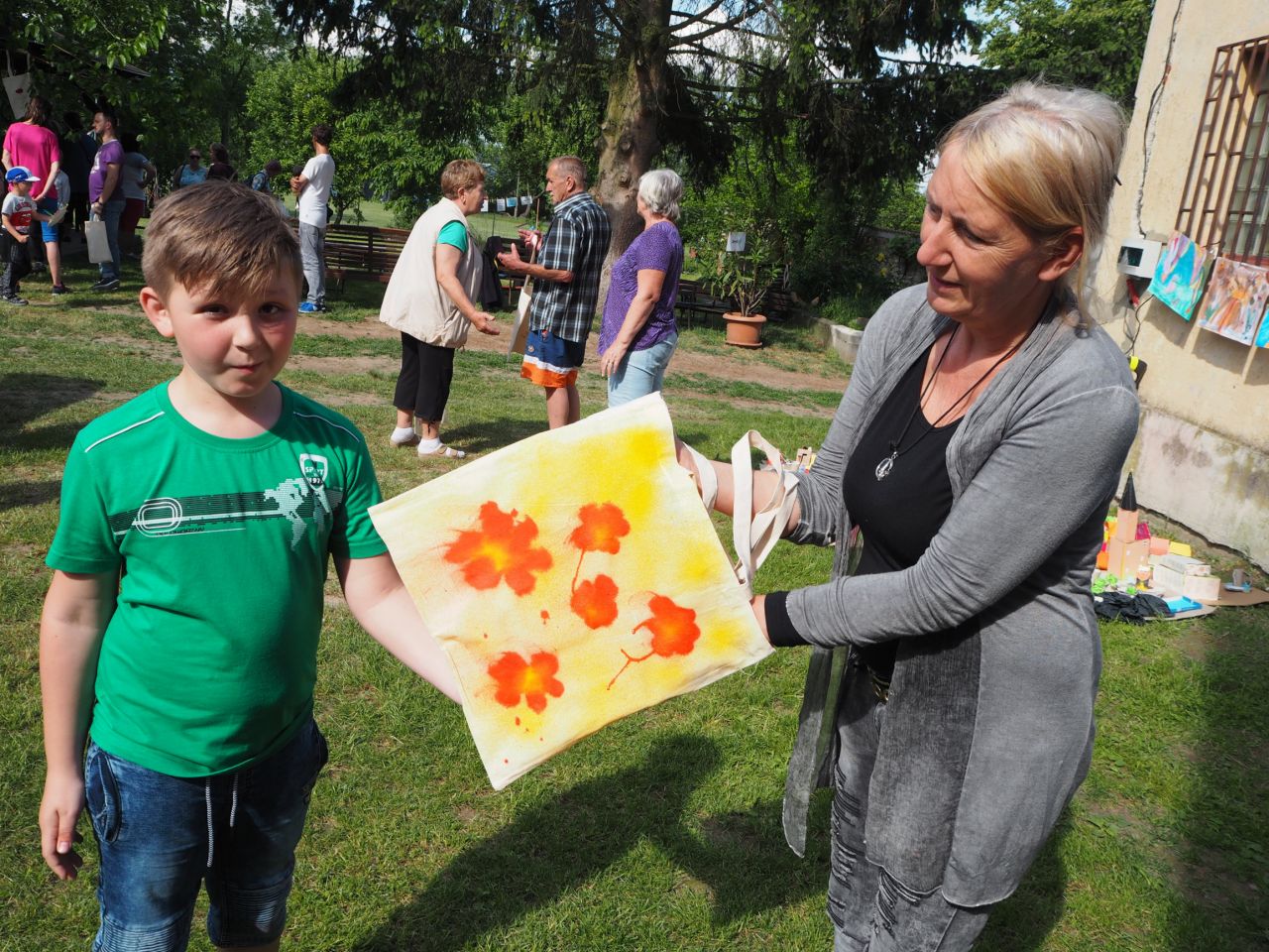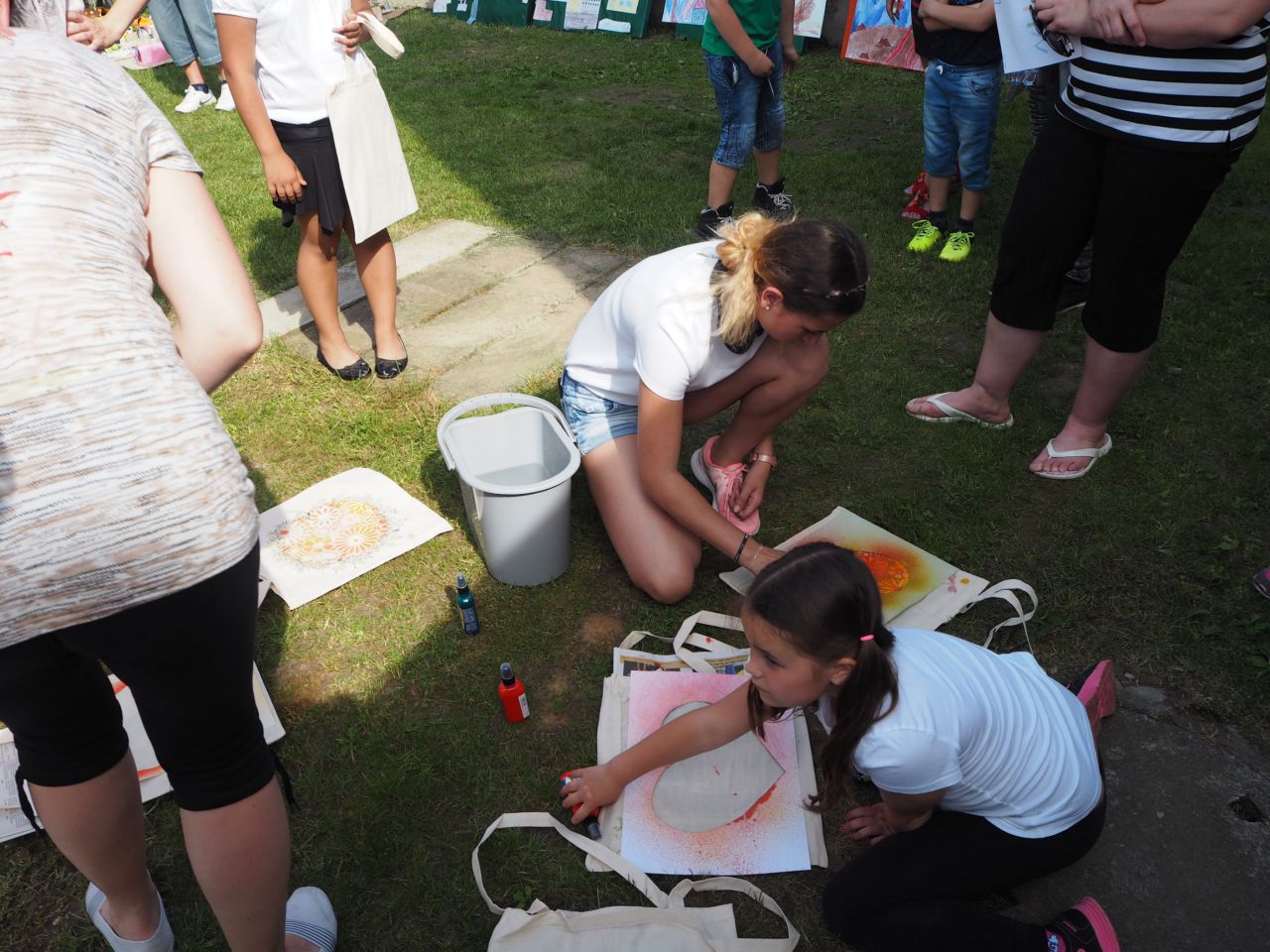 To vám bylo tak krásné páteční odpoledne! Kdo přišel, viděl krátké vystoupení dětí, ochutnal dobroty našich kuchařek a všech dospělých ze školy, získal informace o celoroční práci a mohl si vyrobit nákupní tašku a pytlíky na pečivo a zeleninu. Všichni si slunečný den opravdu užili.