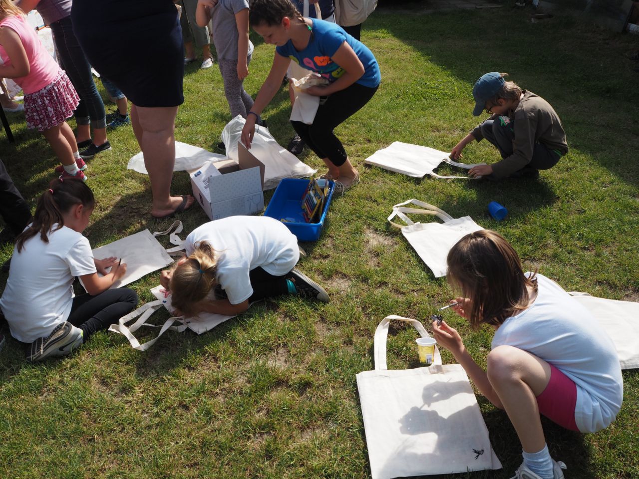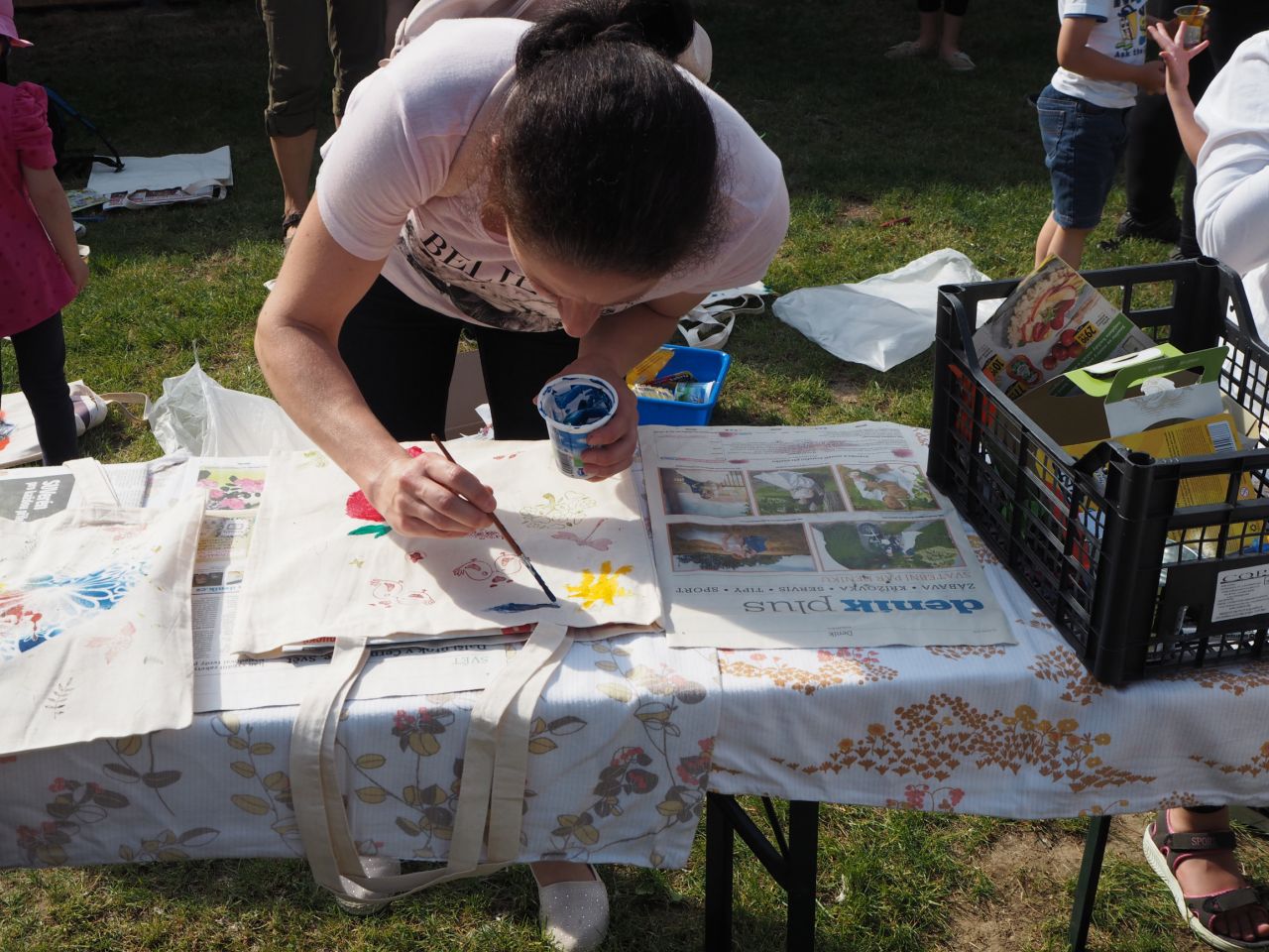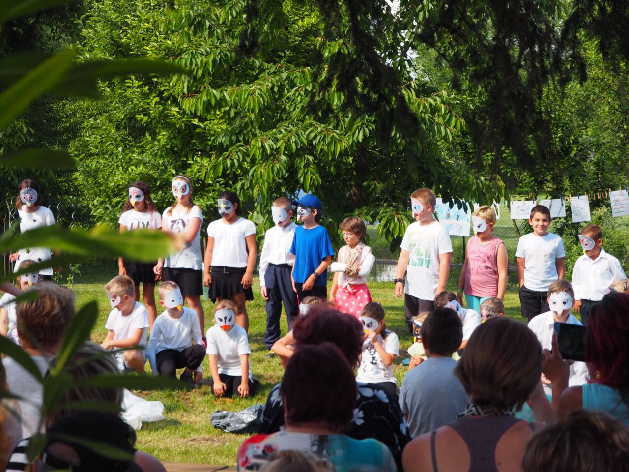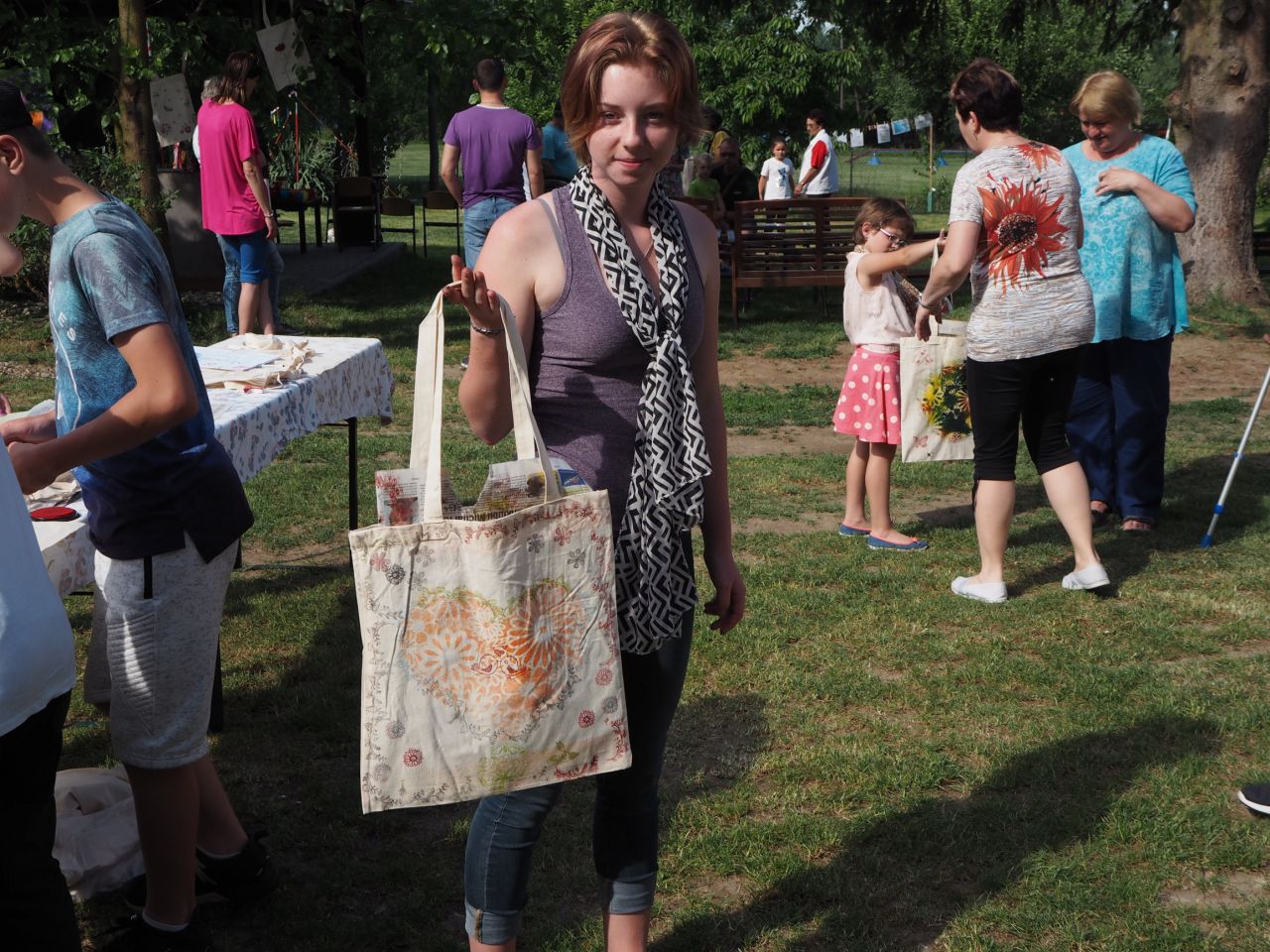 To vám bylo tak krásné páteční odpoledne! Kdo přišel, viděl krátké vystoupení dětí, ochutnal dobroty našich kuchařek a všech dospělých ze školy, získal informace o celoroční práci a mohl si vyrobit nákupní tašku a pytlíky na pečivo a zeleninu. Všichni si slunečný den opravdu užili.