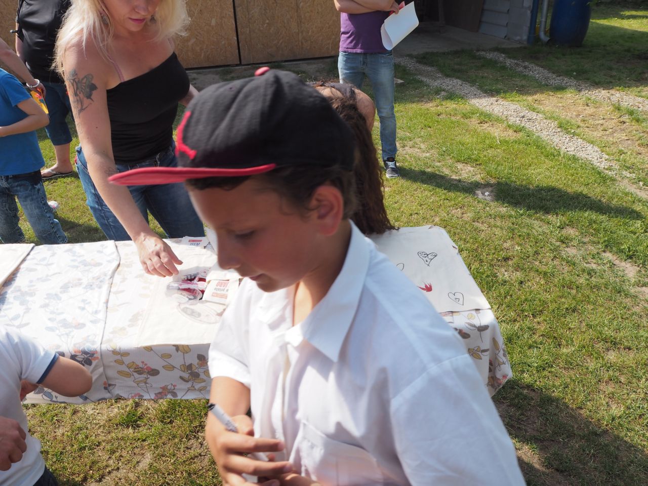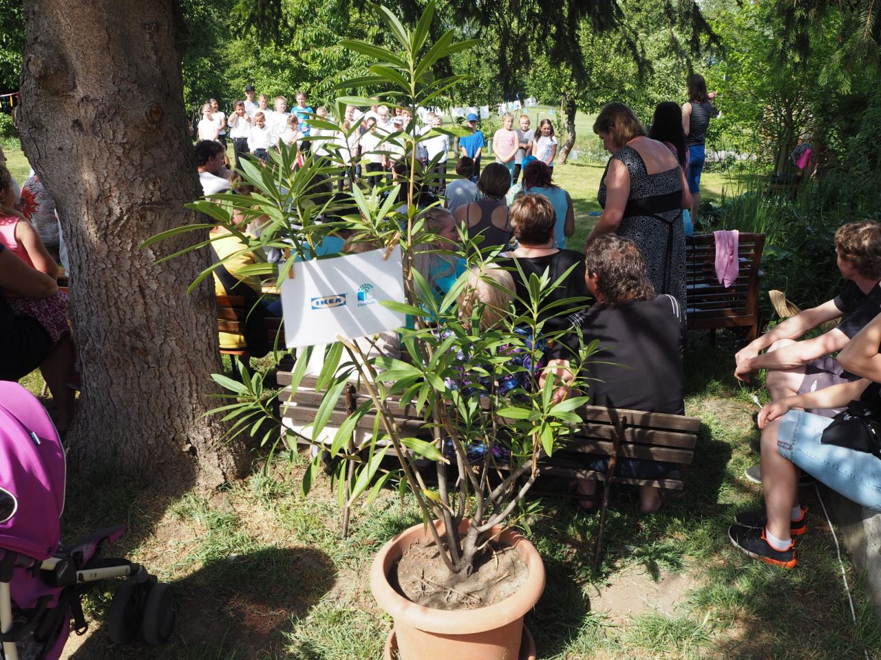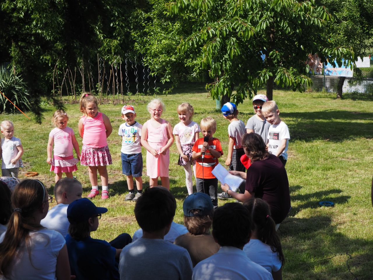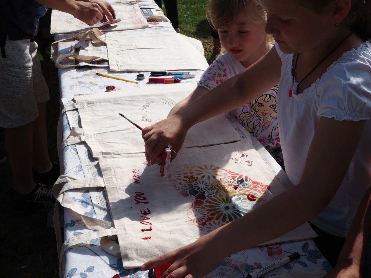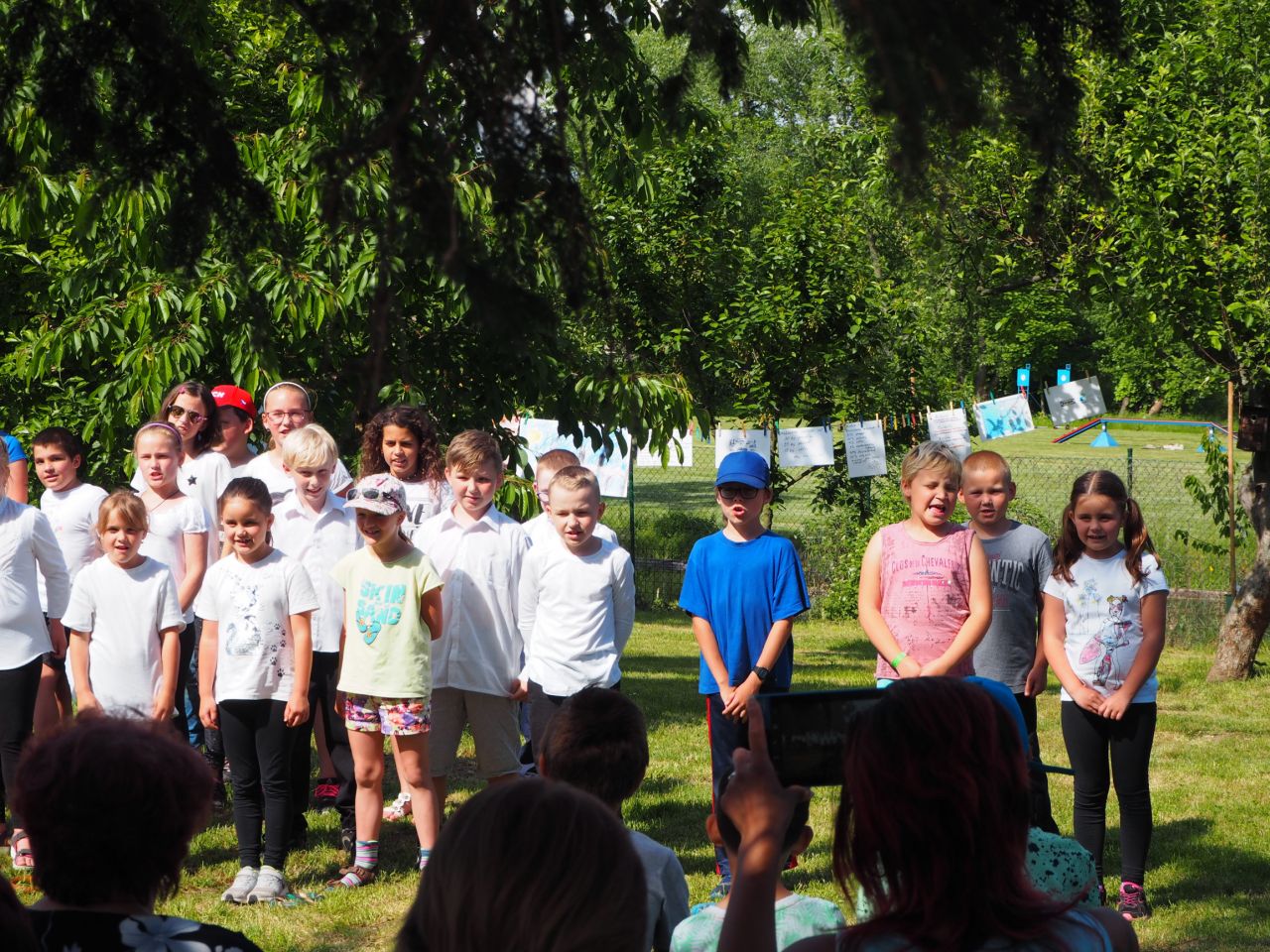 To vám bylo tak krásné páteční odpoledne! Kdo přišel, viděl krátké vystoupení dětí, ochutnal dobroty našich kuchařek a všech dospělých ze školy, získal informace o celoroční práci a mohl si vyrobit nákupní tašku a pytlíky na pečivo a zeleninu. Všichni si slunečný den opravdu užili.